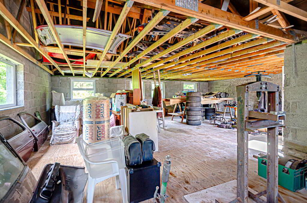 Outbuildings in 4 garages, heated workshop and storage with potential for conversion to living space