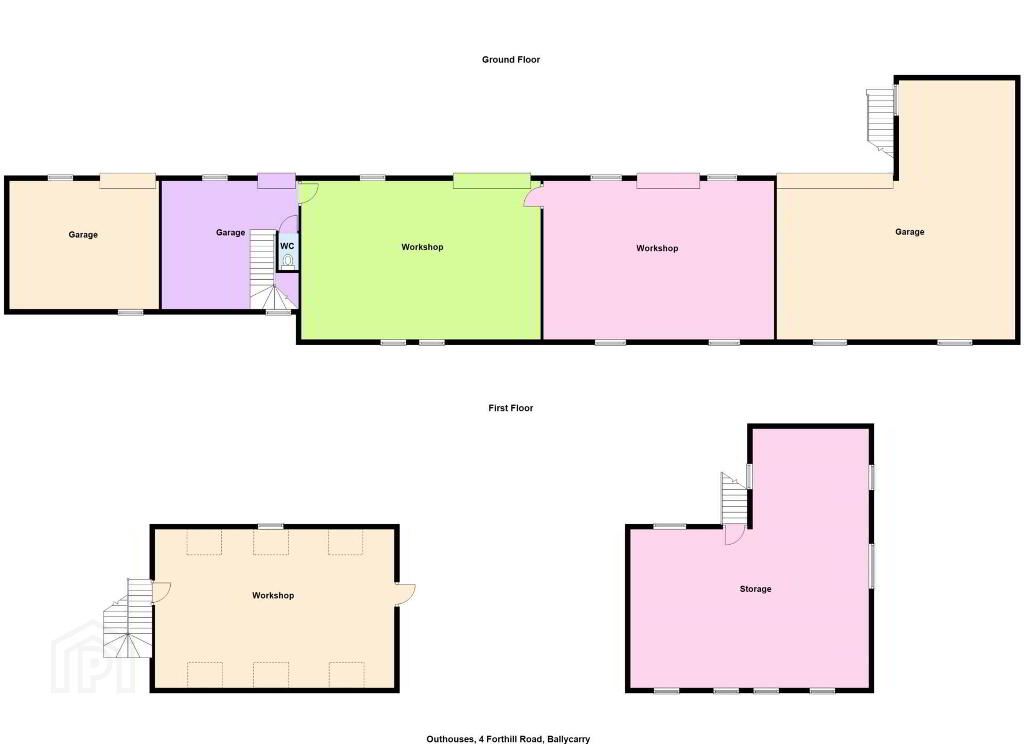 Storage - 17'10" (5.44m) x 15'6" (4.72m) Single storey storage area with W.C, lighting and sliding door. Staircase leading up to first floor workshop above adjacent garage